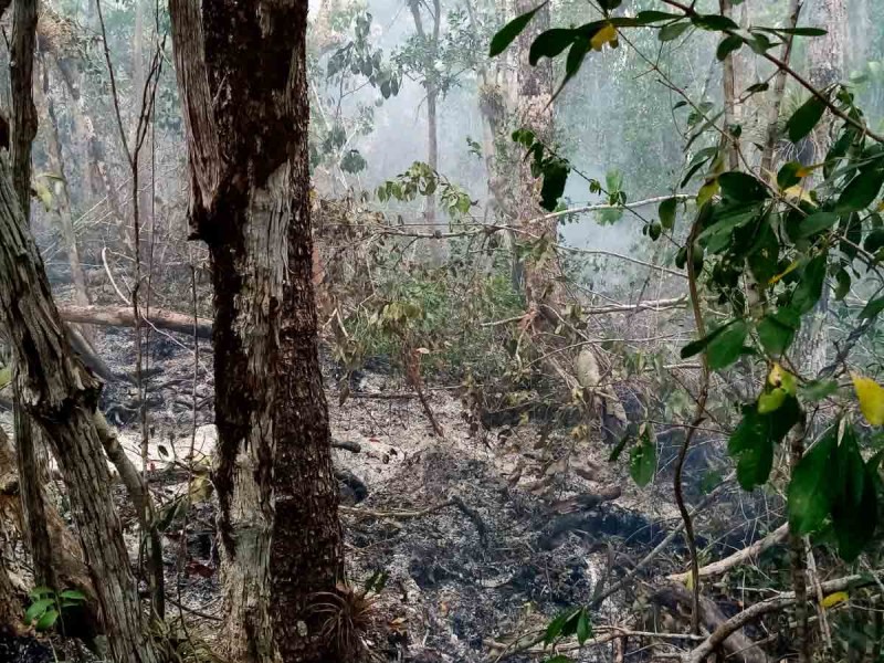 El incendio forestal que inició desde el 10 de mayo en el Área de Protección de Flora y Fauna Uaymil /Sian Ka’an, municipio de Bacalar, Quintana Roo, tiene apenas 50 por ciento de control y 40 por ciento de liquidación, informó la Conafor.