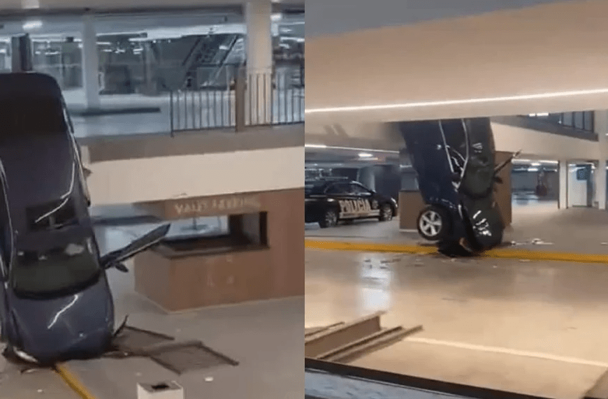 La tarde de ayer, usuarios de redes sociales captaron en video el momento en que un auto cayó de uno de los pisos del estacionamiento de la plaza comercial Town Square, ubicada en el municipio de Metepec, Estado de México (Edomex).